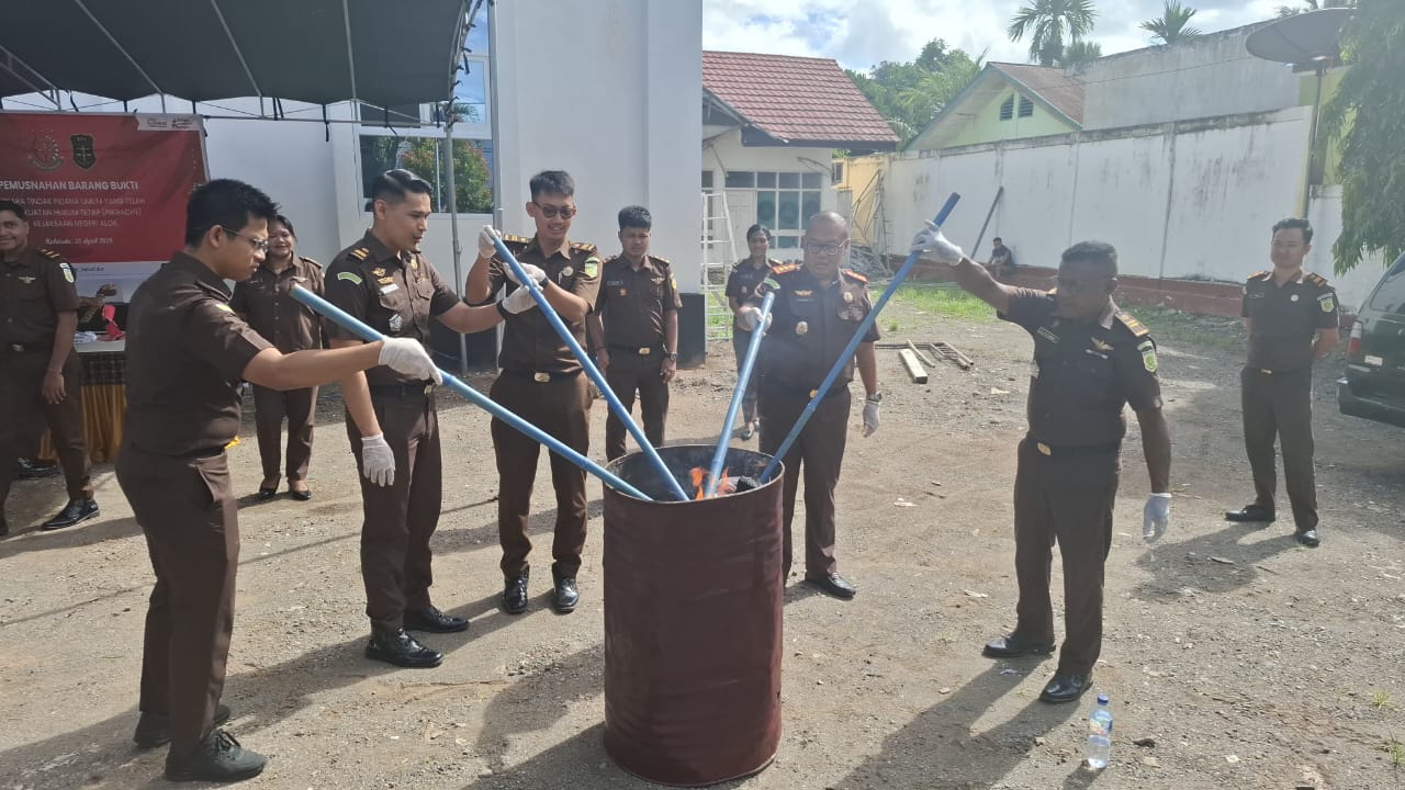 Kajari Alor melalui Kasi Pemulihan Aset dan Pengelolaan Barang Bukti (PAPBB), Ridhollah Agung Erinsyah, S.H., M.H mengatakan, kegiatan ini merupakan pelaksanaan putusan pengadilan yang telah berkekuatan hukum tetap (inkracht), sebagaimana dalam amar putusan dirampas untuk dimusnahkan.