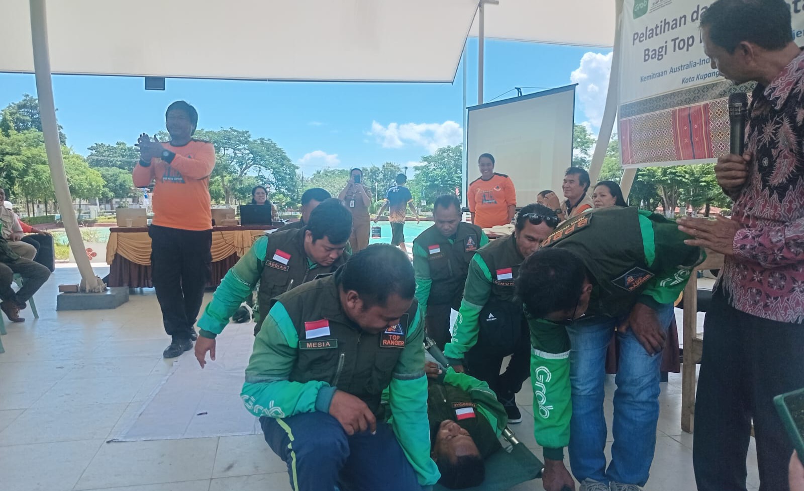 Kupang, seputar-ntt.com — Program SIAP SIAGA bekerja sama dengan BPBD Kota Kupang dan Grab menyelenggarakan kegiatan Training dan Simulasi Ruang SOP bagi Top Ranger Kota Kupang di Podium Lapangan Upacara Kantor Wali Kota Kupang. Kegiatan ini bertujuan memperkuat kapasitas respon cepat berbasis komunitas melalui pelibatan mitra pengemudi transportasi daring sebagai relawan penolong pertama dalam situasi darurat.
